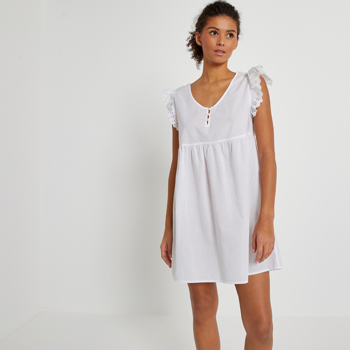 Περιγραφή – Νυχτικό – Μικρή πατιλέτα με κουμπιά – Βολάν με κοφτό κέντημα στους ώμουςΔιαστάσεις για το μέγεθος 38/M – Μήκος: 90 εκ.Σύνθεση και συντήρηση: – Κύριο υλικό: 100% βαμβάκι – Δευτερεύον υλικό: 100% βαμβάκι – Πλύσιμο στους 40°C στο πρόγραμμα για ευαίσθητα – Σιδέρωμα σε μέτρια θερμοκρασία – Στεγνωτήριο σε χαμηλή ταχύτητα – Απαγορεύεται το στεγνό καθάρισμα / η χρήση λευκαντικού