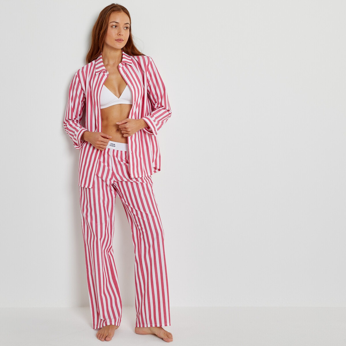Περιγραφή – Μακρυμάνικη ζακέτα σε φαρδιά γραμμή με κουμπιά μπροστά Ίσιο παντελόνι με λάστιχο στη μέση, μονόχρωμη ζώνη με ετικέτα – Μοτίβο με ρίγεςΔιαστάσεις για το μέγεθος 38/MΖακέτα – Μήκος: 70 εκ. – Περίμετρος στήθους: 106 εκ.Παντελόνι – Μήκος καβάλου: 77 εκ.Σύνθεση και συντήρηση: – 100% βαμβάκι – Πλύσιμο στους 40°C στο πρόγραμμα για ευαίσθητα – Σιδέρωμα σε μέτρια θερμοκρασία – Στεγνωτήριο σε χαμηλή ταχύτητα – Απαγορεύεται το στεγνό καθάρισμα / η χρήση λευκαντικού