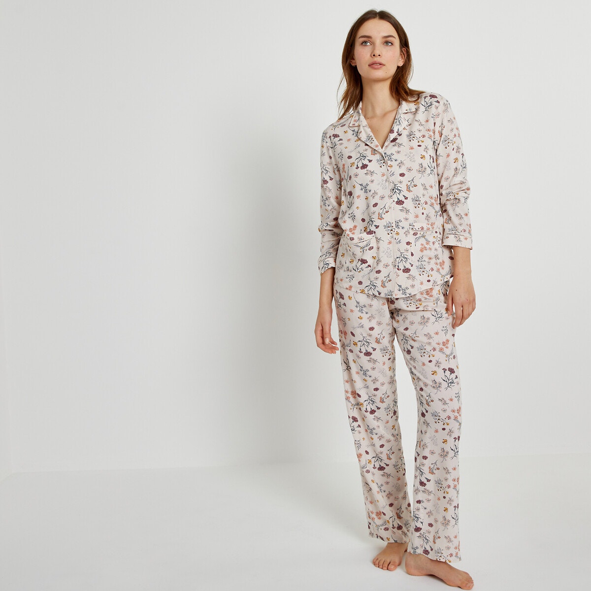 Περιγραφή – Μακρυμάνικη ζακέτα με πέτο γιακά, 2 πλακέ τσέπες μπροστά και αζούρ λεπτομέρειες – Ίσιο παντελόνι με λάστιχο στη μέση – Φλοράλ μοτίβοΔιαστάσεις για το μέγεθος 38/MΖακέτα – Μήκος: 65 εκ. – Περίμετρος στήθους: 106 εκ.Παντελόνι – Μήκος καβάλου: 77 εκ.Σύνθεση και συντήρηση: – 100% βισκόζη – Πλύσιμο στους 40°C στο πρόγραμμα για ευαίσθητα – Σιδέρωμα σε μέτρια θερμοκρασία – Στεγνωτήριο σε χαμηλή ταχύτητα – Απαγορεύεται το στεγνό καθάρισμα / η χρήση λευκαντικού – ΥΛΙΚΟ ΠΟΥ ΠΡΟΕΡΧΕΤΑΙ ΑΠΟ ΔΑΣΗ ΑΕΙΦΟΡΟΥ ΑΝΑΠΤΥΞΗΣ. Η βισκόζη LENZING™ ECOVERO™ είναι μια βιώσιμη ίνα που σέβεται το περιβάλλον γιατί παράγεται από πολτό ξύλου πιστοποιημένων δασών υπεύθυνης διαχείρισης (FSC® ή PEFC™) ή από αειφόρες πηγές. Αυτές οι δασικές εκμεταλλεύσεις επαναφυτεύουν δέντρα σε λογικό ρυθμό, διευκολύνοντας την ανανέωση του δάσους.